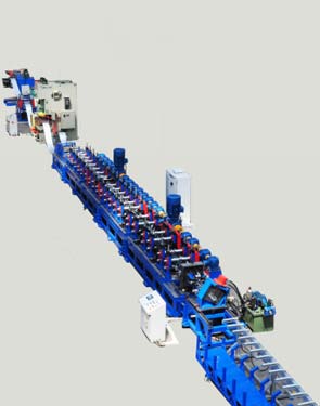 1.貨架立柱冷彎型鋼設(shè)備包括液壓開卷、校平、送料、沖孔、成型、剪切、出料。控制采用西門子PLC,貨架立柱生產(chǎn)線,觸摸屏輸入,自動化程度高、操作方便、生產(chǎn)效率高,整線生產(chǎn)速度可達到40m/min。